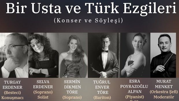 Başbakan Yardımcılığı, Turizm, Kültür, Gençlik ve Çevre Bakanlığı’na bağlı Devlet Opera ve Bale Koordinasyon Merkezi (KKTCDOB) ile T.C. Kültür ve Turizm Bakanlığı’na bağlı Lefkoşa Yunus Emre Enstitüsü iş birliğinde düzenlenecek konserde, besteci Turgay Erdener söyleşi konuğu olurken, Ankara Devlet Opera ve Balesi solistlerinden Selva Erdener, KKTCDOB kurucularından soprano Sermin Dikmen Töre ve KKTCDOB Genel Sorumlusu ve Genel Sanat Yönetmeni bariton Tuğrul Enver Töre solist olarak sahnede olacak. Ayrıca, piyanist Esra Poyrazoğlu Alpan’ın solistlere eşlik edeceği söyleşili konserin moderatörlüğünü ise orkestra şefi Murat Menket üstlenecek.