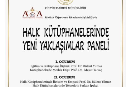 Kültür Dairesi 10 Ekim Cuma günü Atatürk Öğretmen Akademisi’nde, “Halk Kütüphanelerinde Yeni Yaklaşımlar Paneli” düzenleyecek. Moderatörlüğünü Ceyhan Özyıldız’ın yapacağı panelin konuşmacıları, Prof....