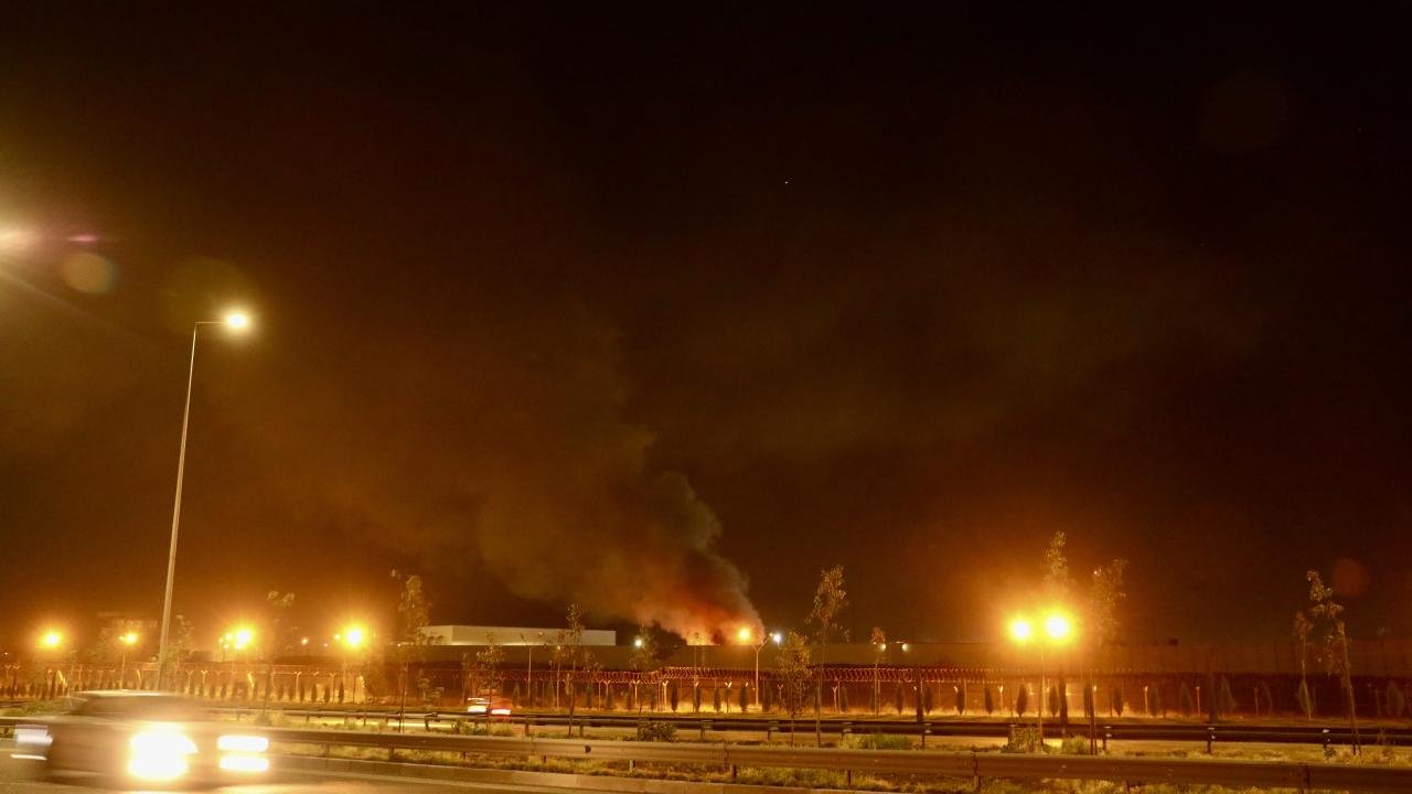 Hava savunma sistemlerinin faaliyete geçtiği havalimanında, bölgede patlama sesleri duyulmasının ardından yangın çıktığı ve gökyüzüne duman yükseldiği görüldü.