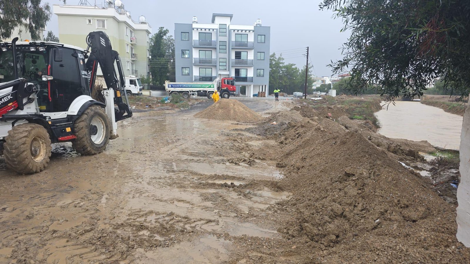 Harmancı, Dr. Burhan Nalbantoğlu Hastanesi Başhekimi Mustafa Kalfaoğlu ile işbirliği içerisinde hareket ettiklerini belirterek, “Gönyeli Barajı’ndan gelen suyun hastaneyi etkilememesi için çalışıyoruz, özel sektörden new jersey bariyerleri temin ederek ve toprak set oluşumları ile hastaneyi korumaya çalışıyoruz” ifadelerini kullandı.