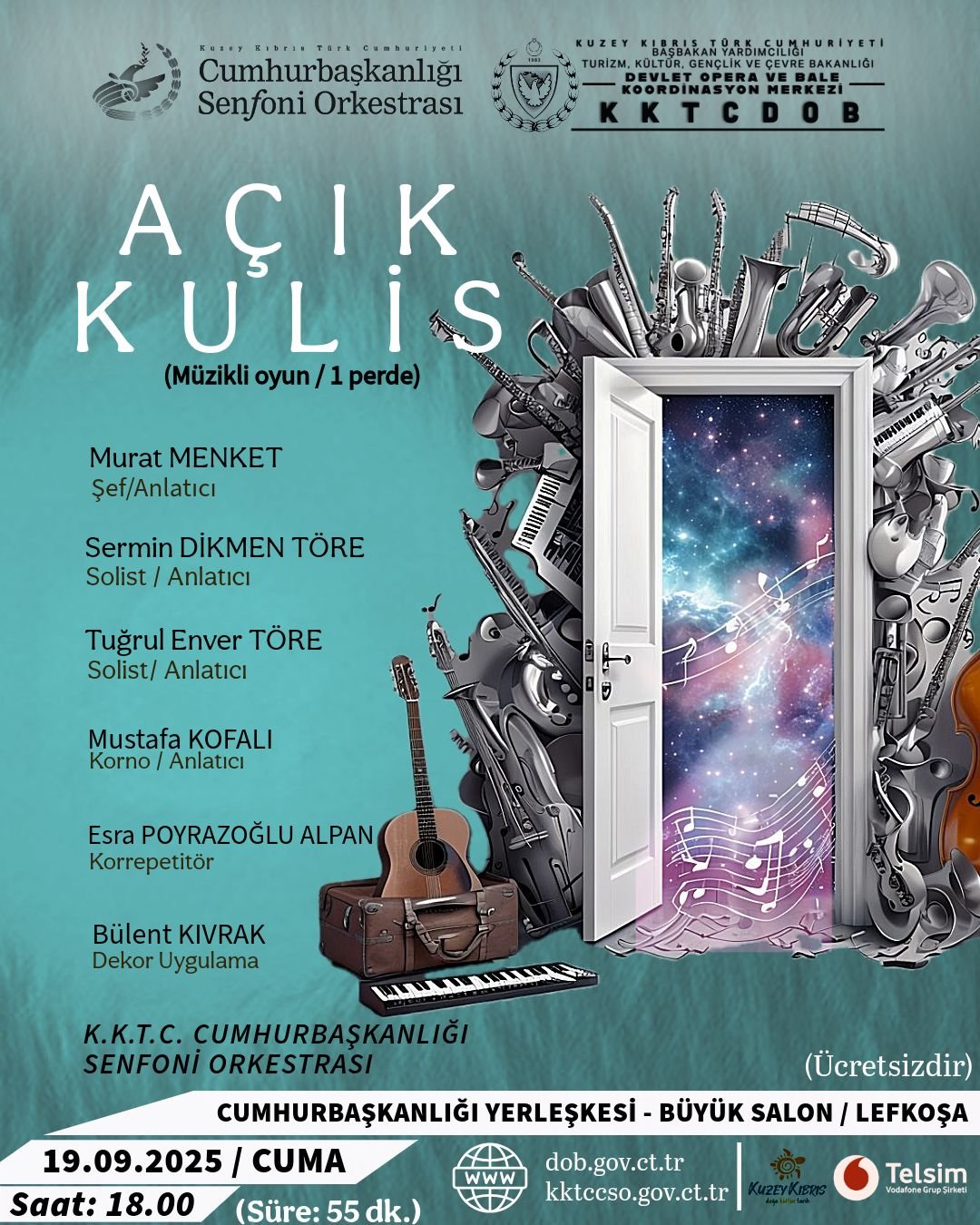 KKTCDOB’tan verilen bilgiye göre, Devlet Opera ve Bale Koordinasyon Merkezi (KKTCDOB) ile Cumhurbaşkanlığı Senfoni Orkestrası’nın (KKTCCSO) ortak yapımı olan oyun saat 18.00’de Cumhurbaşkanlığı Yerleşkesi Büyük Konferans Salonu’nda sahnelenecek.