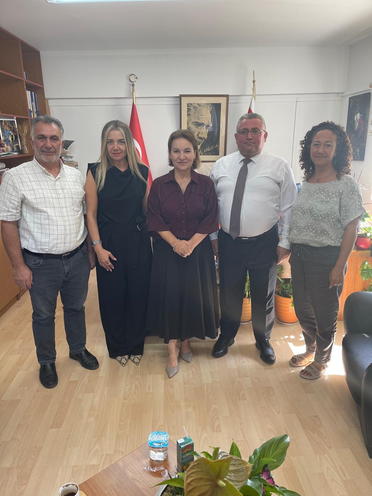 Kültür Dairesi Müdürü Şirin Zaimağaoğlu, Posta Dairesi Müdürü Yakup İskender ve beraberindeki Grafik Tasarım Şube Sorumlusu Görel Korol Sönmezer ile Pul Şubesi Sorumlusu Mustafa Ulukan’ı kabul etti.