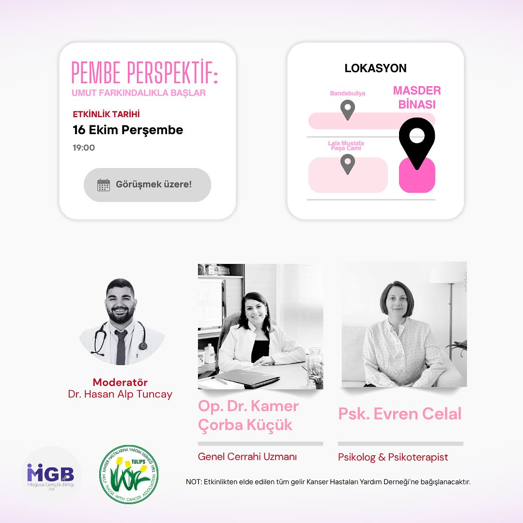 Mağusa Gençlik Birliği, meme kanseri farkındalığını artırmak, erken tanının önemine dikkat çekmek ve genç kadınlarda beden farkındalığını güçlendirmek amacıyla “Pembe Perspektif: Umut Farkındalıkla Başlar” adlı bir etkinlik düzenliyor.