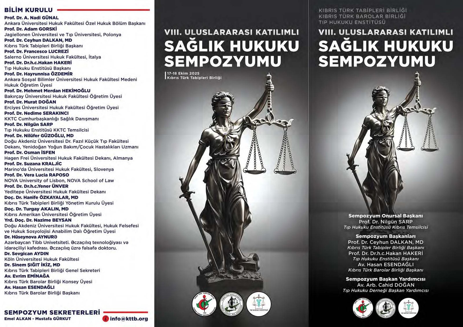 Kıbrıs Türk Tabipleri Birliği, Kıbrıs Türk Barolar Birliği ve Tıp Hukuku Enstitüsü’nün birlikte düzenleyeceği uluslararası katılımlı sempozyum Kıbrıs Türk Tabipleri Birliği Dr. Mustafa Hami Konferans Salonunda olacak.