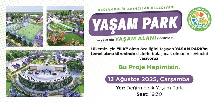 Değirmenlik Akıncılar Belediyesi’nin öz kaynaklarıyla hayata geçirilecek olan “Yaşam Park Projesi”nin temel atma töreni, 13 Ağustos Çarşamba günü yapılacak.